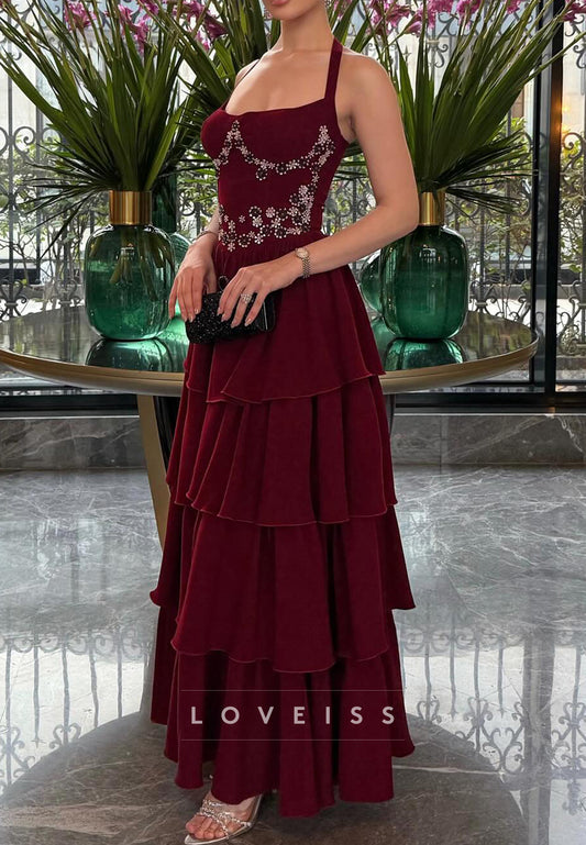 Sweetheart Beaded Tiered Mermaid Evening Dress