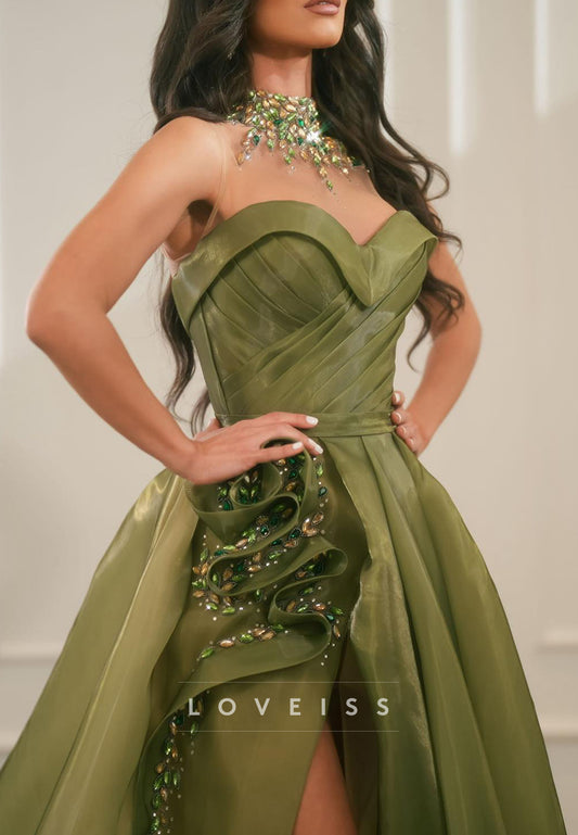 Sweetheart Beaded Side Slit Pleated A-Line Formal Dress