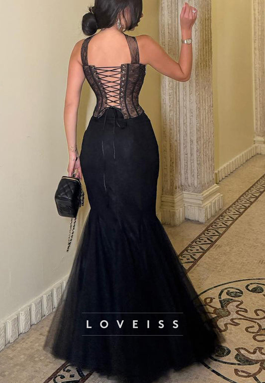 V-Neck Corset Fitted Sleeveless Mermaid Evening Dress