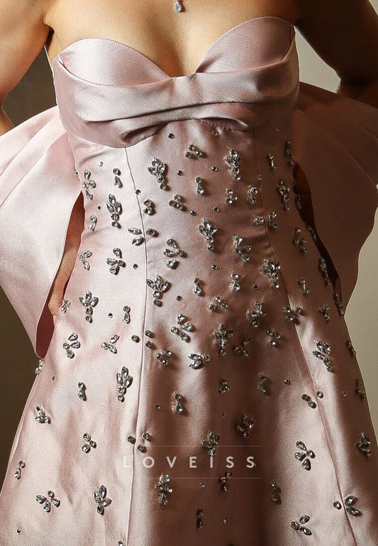 Sweetheart Sleeveless Beaded Sparkly Satin A-Line Evening Dress