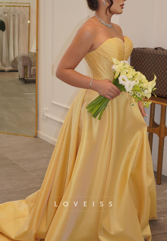 Sweetheart Sleeveless Pleated Side Slit A-Line Evening Dress