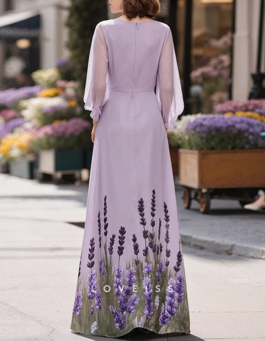 Chic A-Line Chiffon Lace Scoop 3/4 Sleeves Floor-Length Mother of the Bride Dress