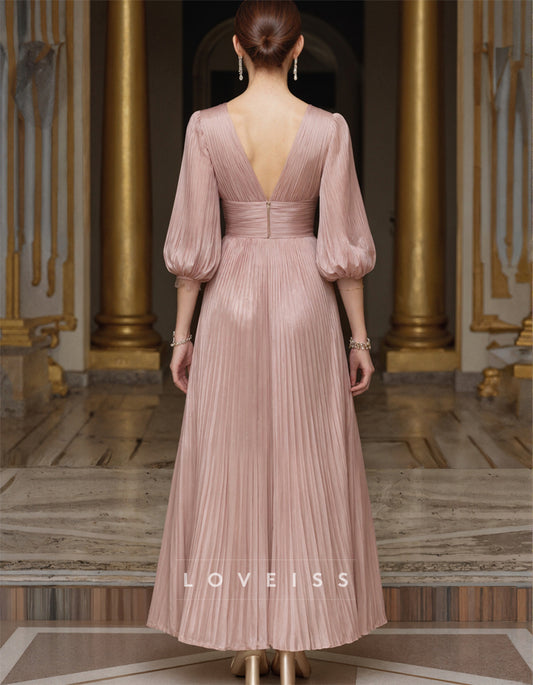Plunging V-Neck And Puff Sleeves Maxi Dress