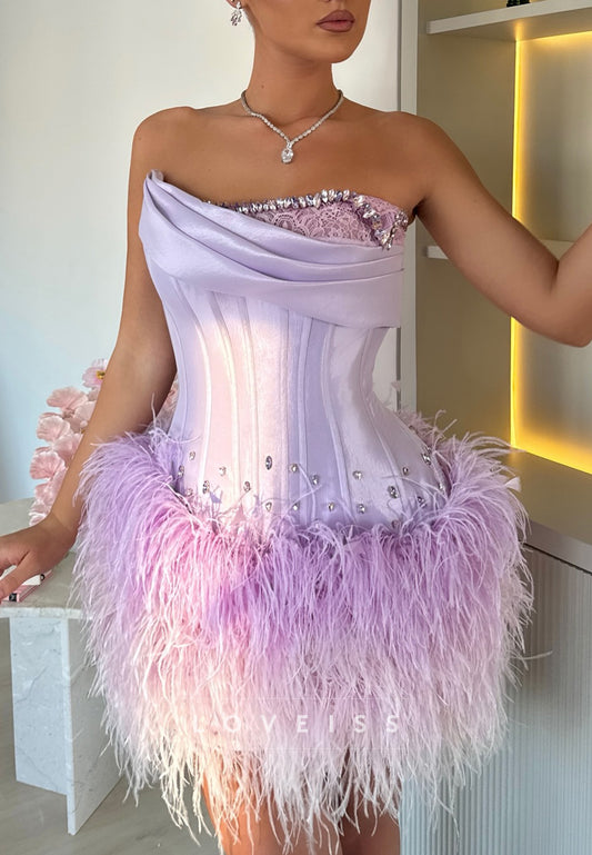 Scoop Sleeveless Beaded Feathered A-Line Short Party Homecoming Dress