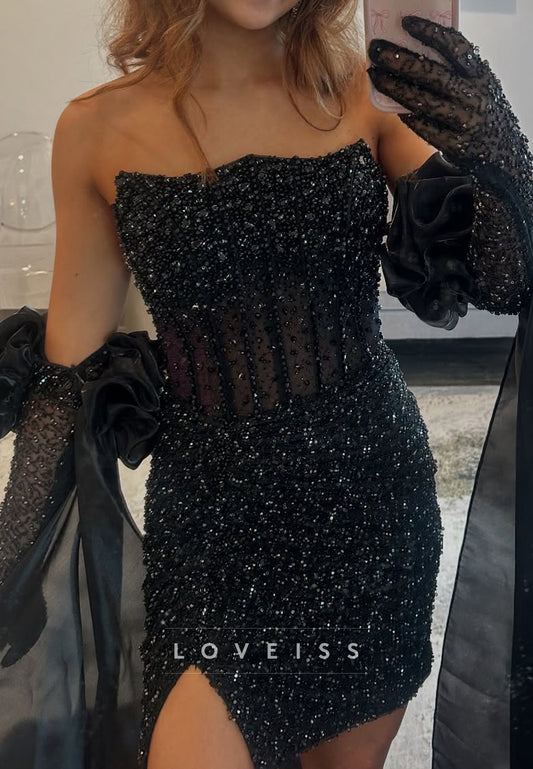V-Neck Strapless Sequins Sheath Homecoming Dress