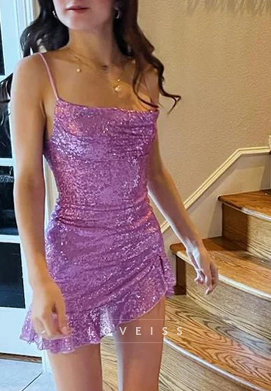 Square Spaghetti Straps Sequins Sheath Party Homecoming Dress