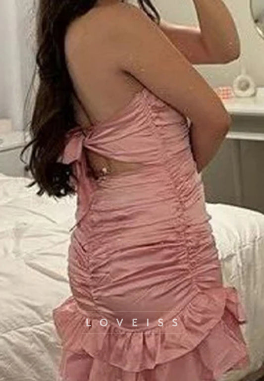 Straight Across Ruffled Pleated Sheath Party Homecoming Dress