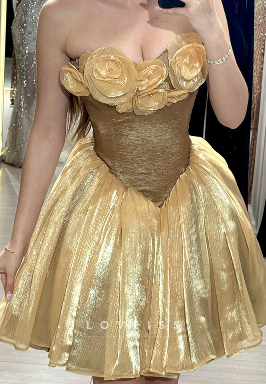 Sweetheart Floral Pleated A-Line Short Party Homecoming Dress