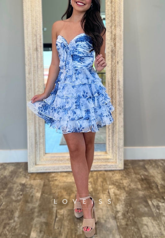 Sweetheart Floral Printed A-Line Short Homecoming Dress