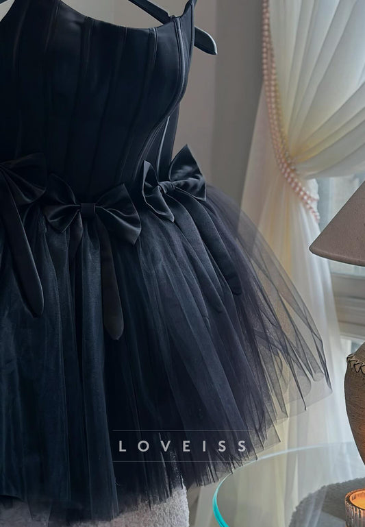 Square Straps Bowknots A-Line Short Homecoming Dress