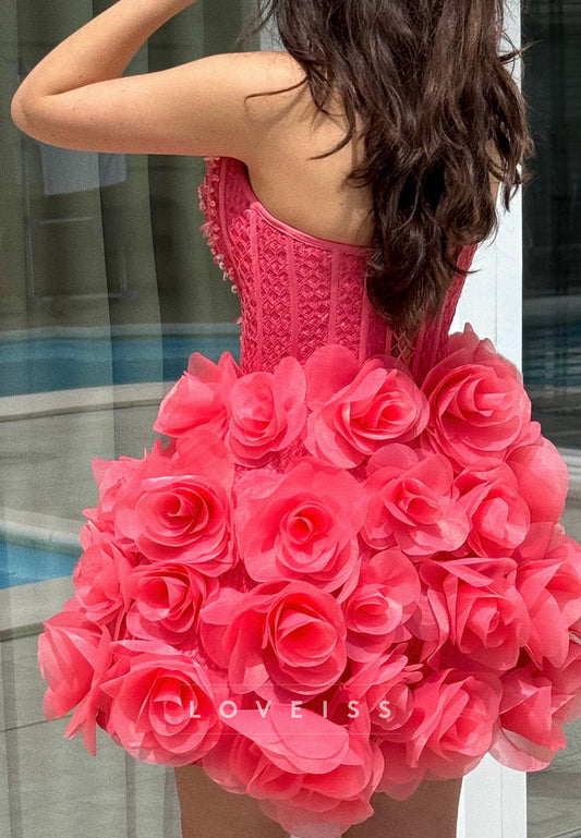 Sweetheart Floral Beaded Tiered A-Line Short Homecoming Dress