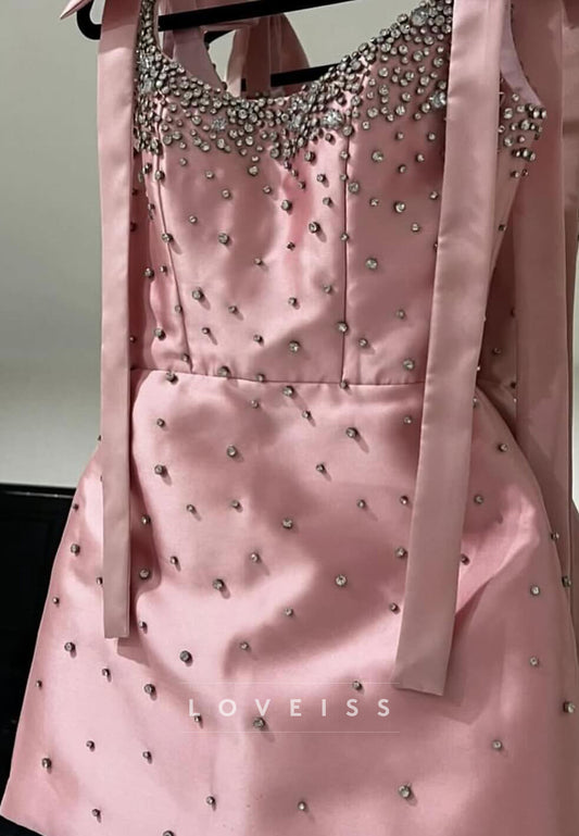 Scoop Straps Beaded A-Line Short Homecoming Dress