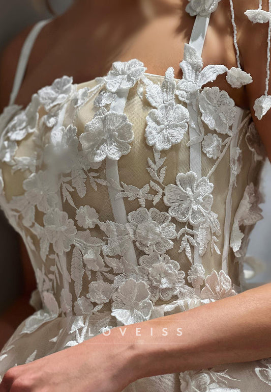 Square Spaghetti Straps Floral Appliques A-Line Short Party Homecoming Dress