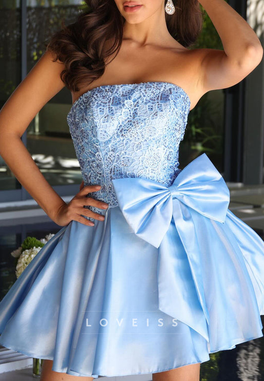 Straight Across Appliques Bowknot A-Line Short Homecoming Dress