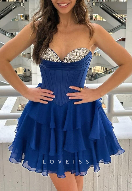 Sweetheart Beaded Tiered A-Line Short Homecoming Dress