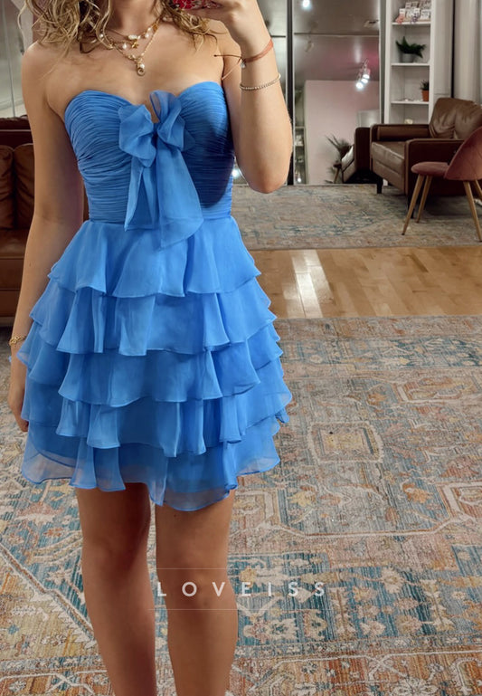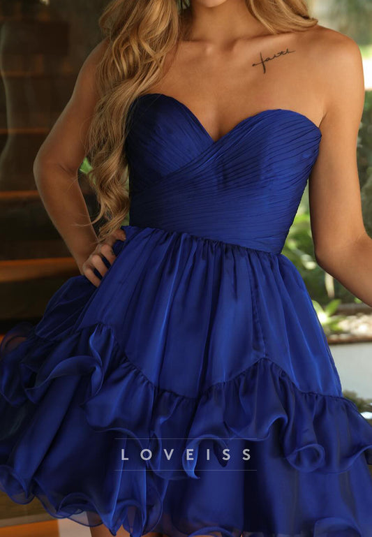 Sweetheart Strapless Tiered Chiffon A-Line Short Homecoming Dress