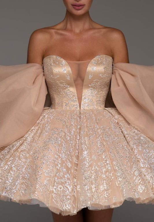 Sweetheart Puff Sleeves A-Line Short Party Homecoming Dress