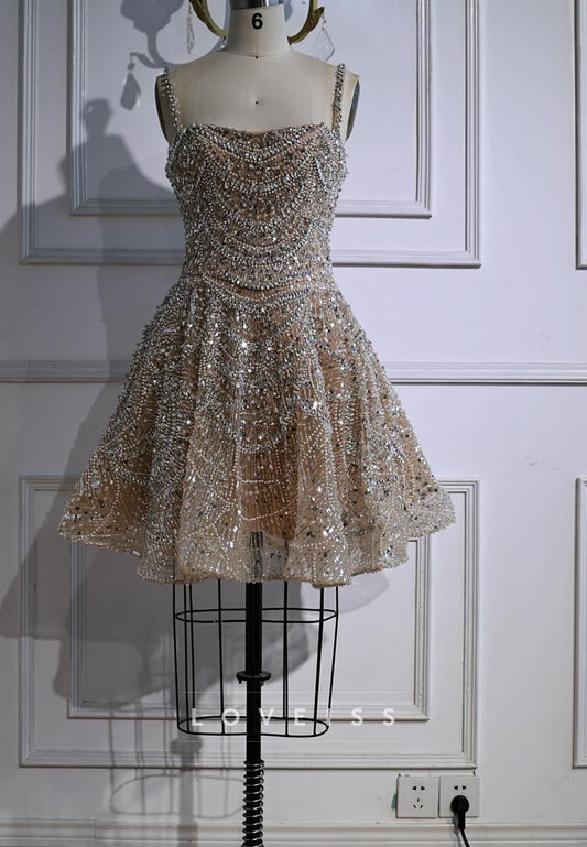 Scoop Spaghetti Straps Beaded Sequins Sparkly A-Line Party Homecoming Dress