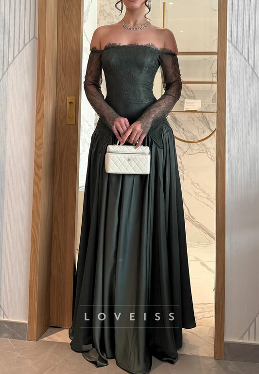 Off-Shoulder Long Sleeves Appliques Satin A-Line Evening Dress