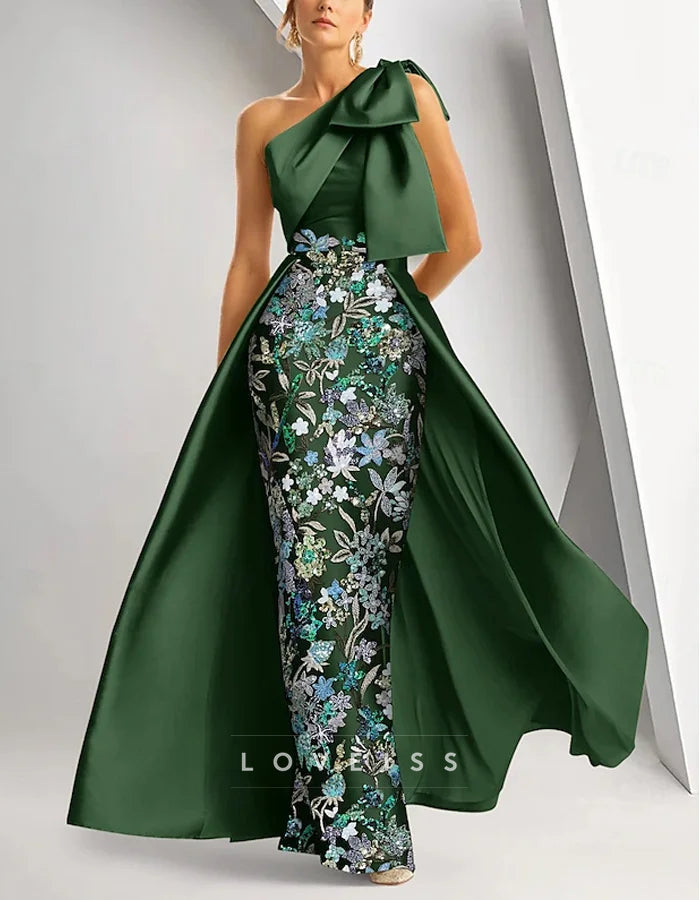 One Shoulder Satin Sequin Bodycon Maxi Dress
