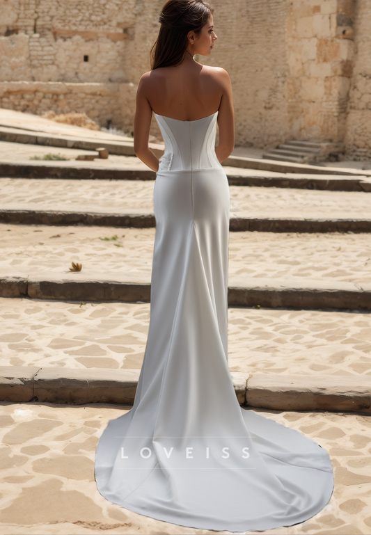 Sweetheart Straps Sleeveless Ruched High Slit Beach Wedding Dress