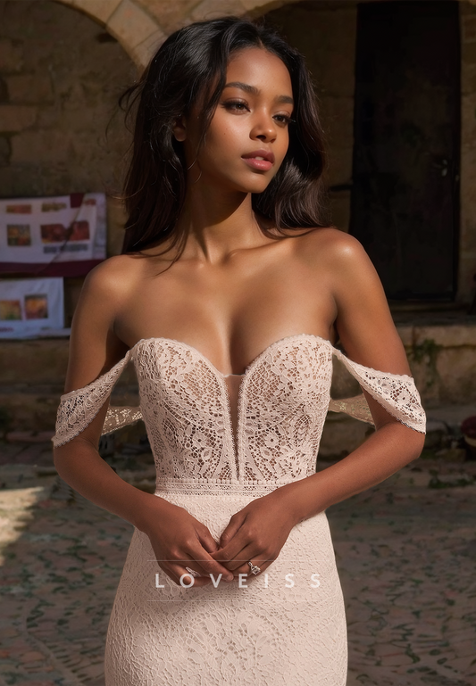 Sweetheart Spaghetti Straps Lace Appliques Mermaid Wedding Dress