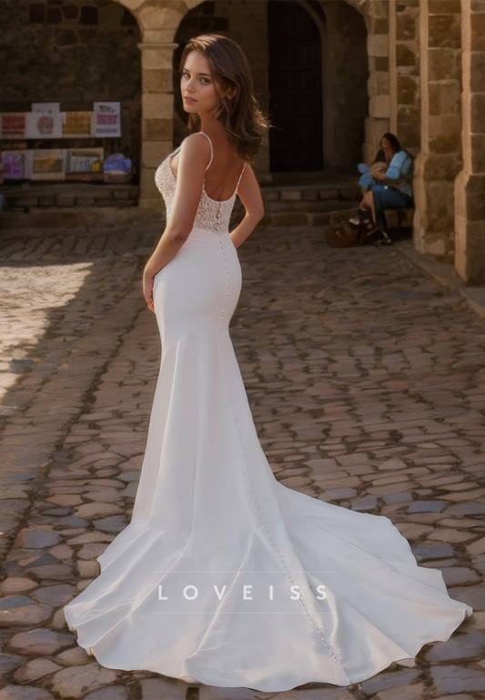 Scoop Spaghetti Straps Appliques Sleek Mermaid Wedding Dress