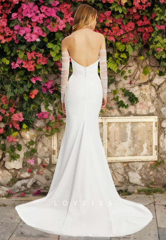 Off-Shoulder Strapless Appliques Mermaid Pleated Wedding Dress