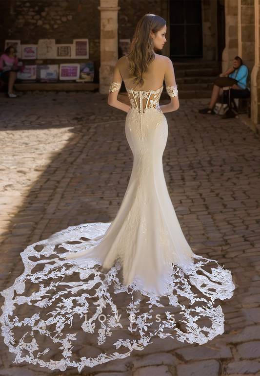 Sweetheart Sleeveless Lace Appliques Sleek Mermaid Wedding Dress