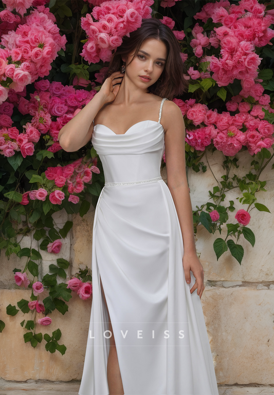 Sweetheart Spaghetti Straps Ruched High Slit Beach Wedding Dress