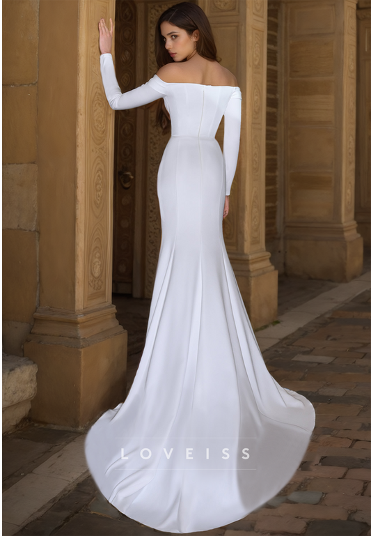 Straight Across Long Sleeves Sleek Mermaid Wedding Dress