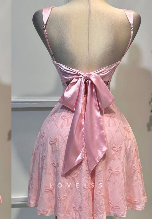 Square Straps Bow Printed A-Line Party Homecoming Dress
