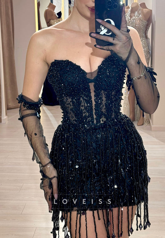 Sweetheart Beaded Fringe Sparkly Sheath Homecoming Party Dress