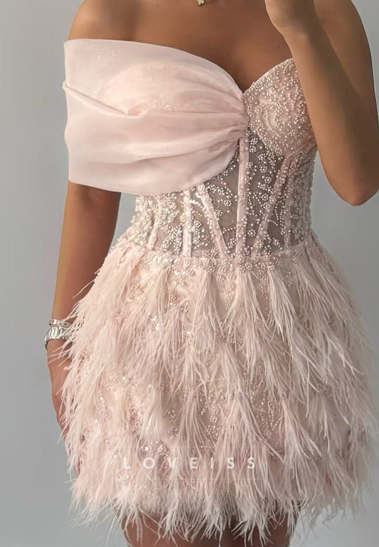 Sweetheart Strapless Beaded Feathered A-Line Short Homecoming Dress