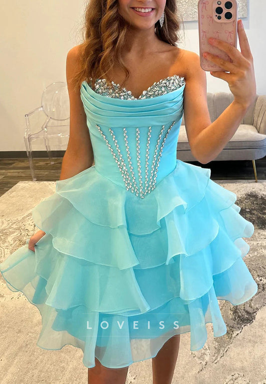 Sweetheart Beaded Tiered A-Line Short Party Homecoming Dress