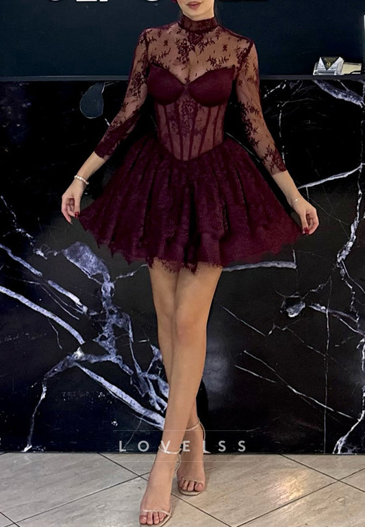 High Neck Appliques A-Line Party Homecoming Dress