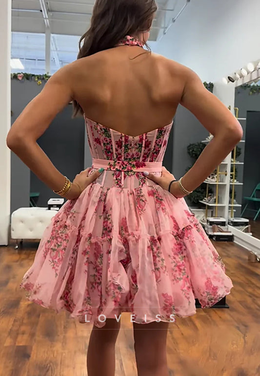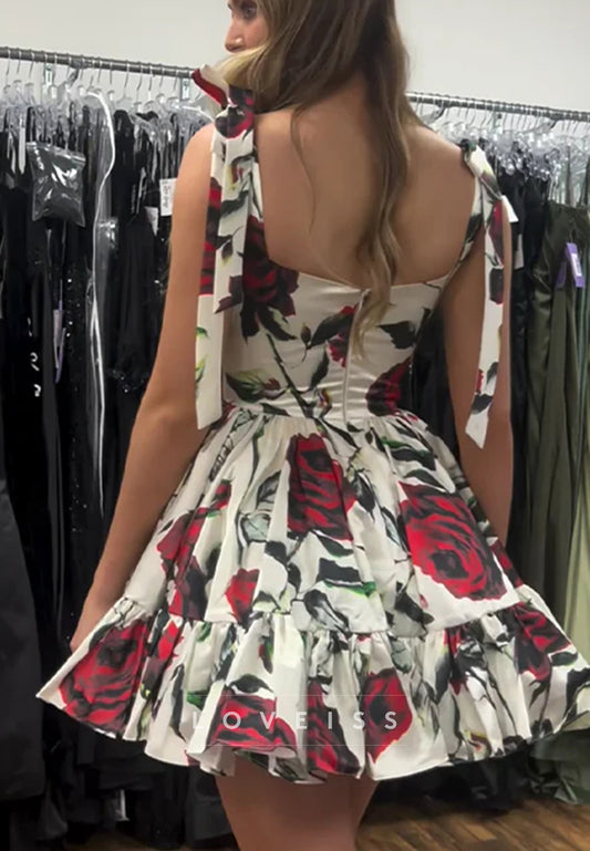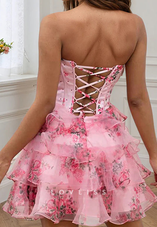Sweetheart Tiered Floral Printed A-Line Homecoming Dress