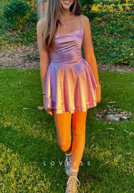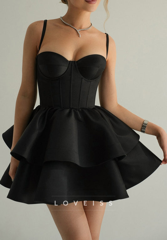Sweetheart Spaghetti Straps Tiered A-Line Short Party Homecoming Dress