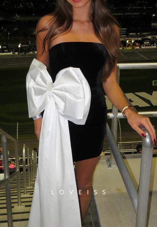 Straight Across Bowknot Sheath Party Homecoming Dress