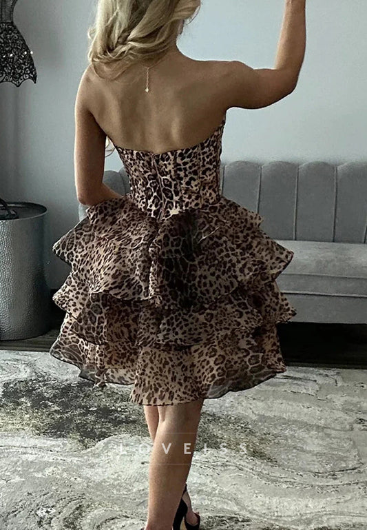 Sweetheart Leopart Printed Tiered A-Line Homecoming Dress