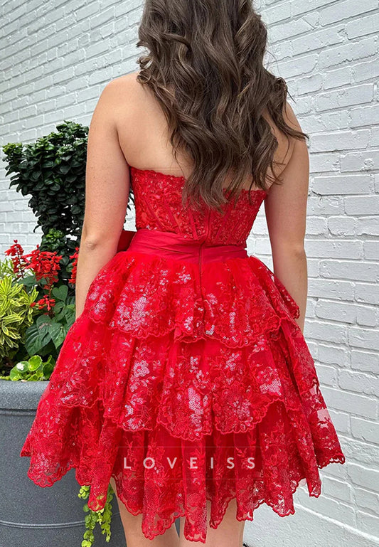 Sweethheart Appliques Tiered A-Line Short Homecoming Dress