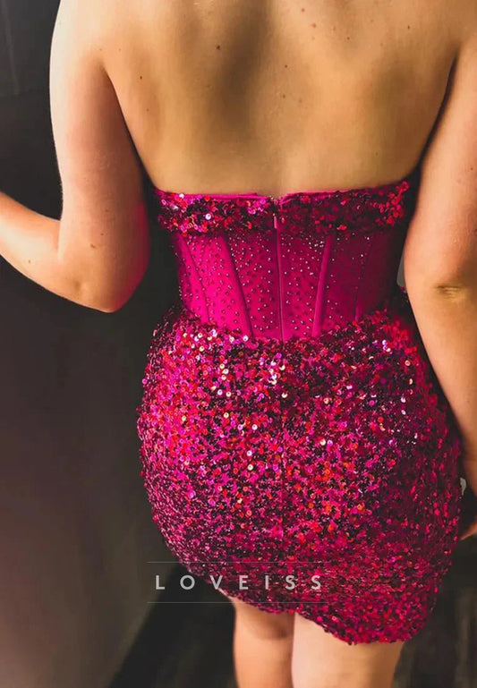Sweetheart Sequins Strapless Sparkly Party Homecoming Dress