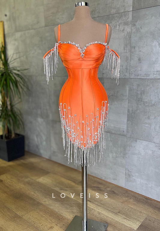 Sweetheart Spaghetti Straps Beaded Fringe Sheath Party Homecoming Dress