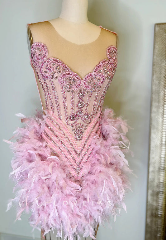 V-Neck Beaded Feathered Sheath Homecoming Dress for Black Girls