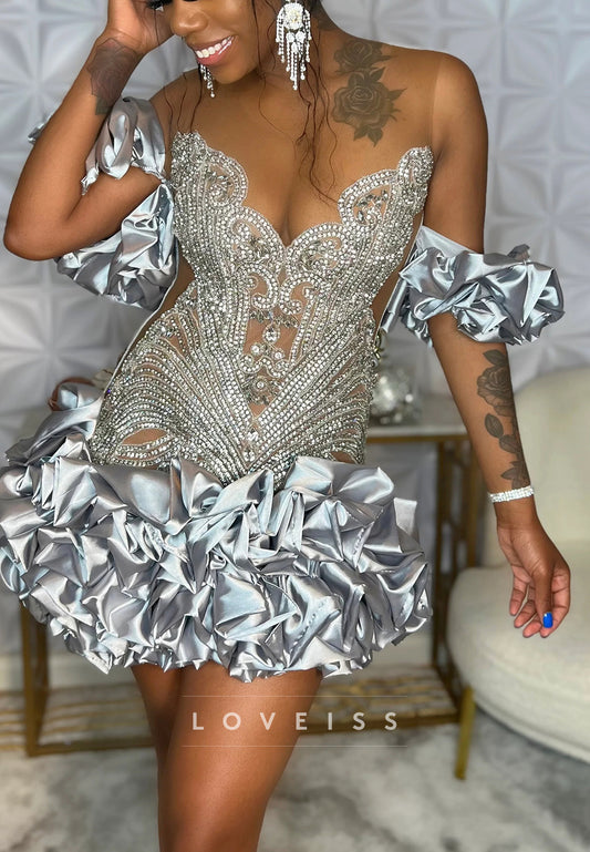 Sweetheart Sequins Puff Sleeves Sheath Party Homecoming Dress
