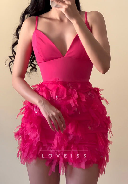 V-Neck Spaghetti Straps A-Line Party Homecoming Dress