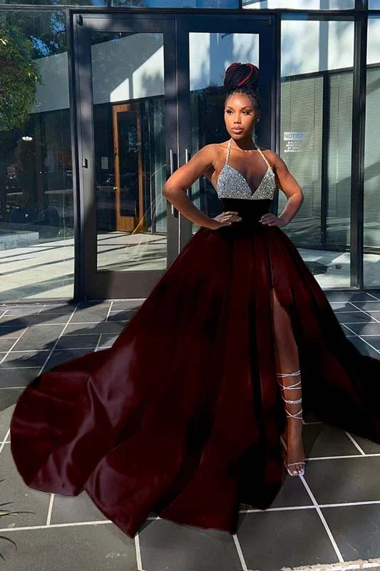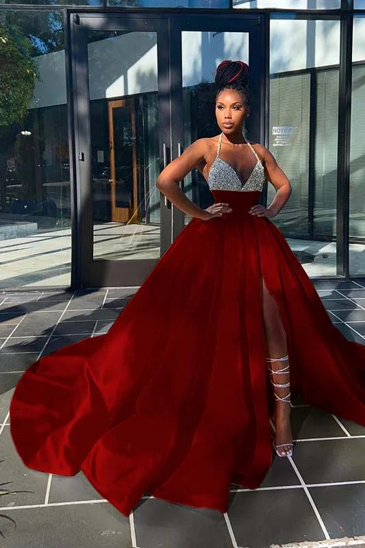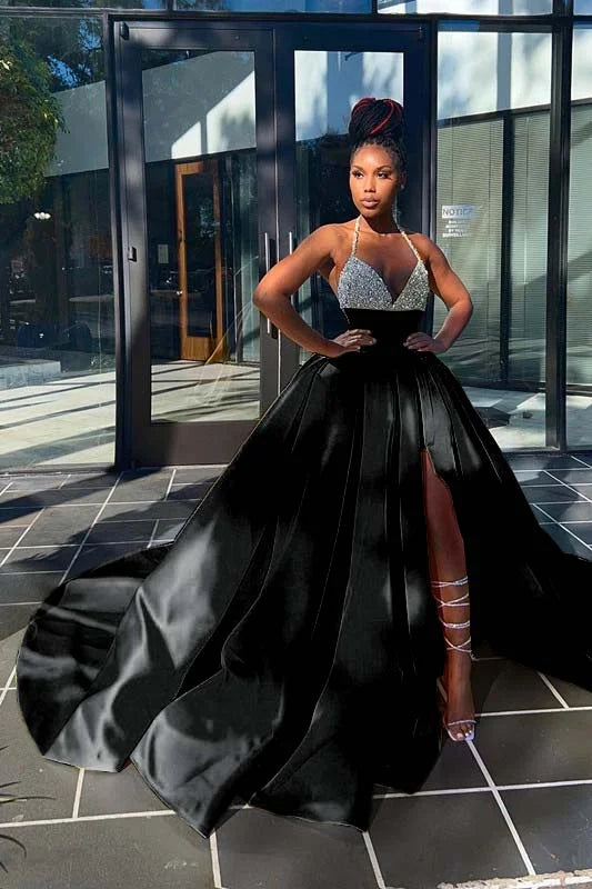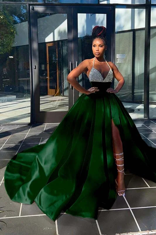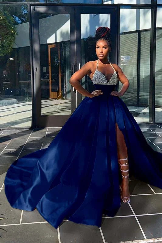 This glamorous yellow sequined prom dress features a flattering V-neck and a sleeveless design, perfect for showcasing your shoulders. Its A-line silhouette gently skims the body, while the elegant side slit adds a touch of allure and ease of movement. Ideal for making a confident statement at any formal event, this dress combines sparkle and sophistication for a memorable look.
