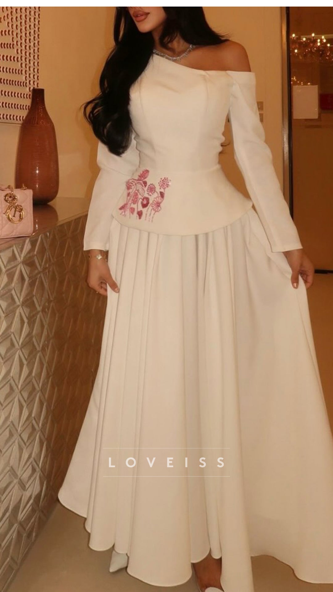 Asymmetrical Long Sleeves Appliques A-Line Evening Dress