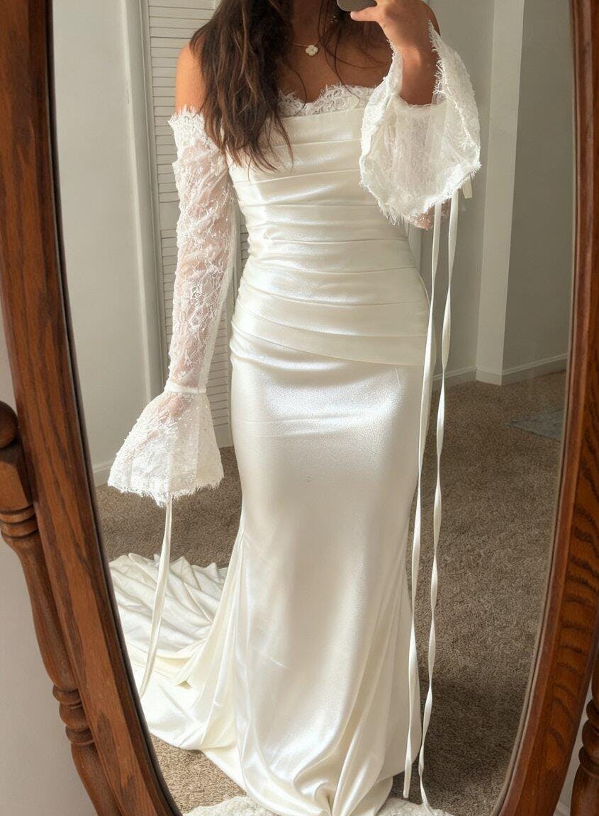 Off-Shoulder Long Sleeves Pleated Sleek Mermaid Wedding Dress