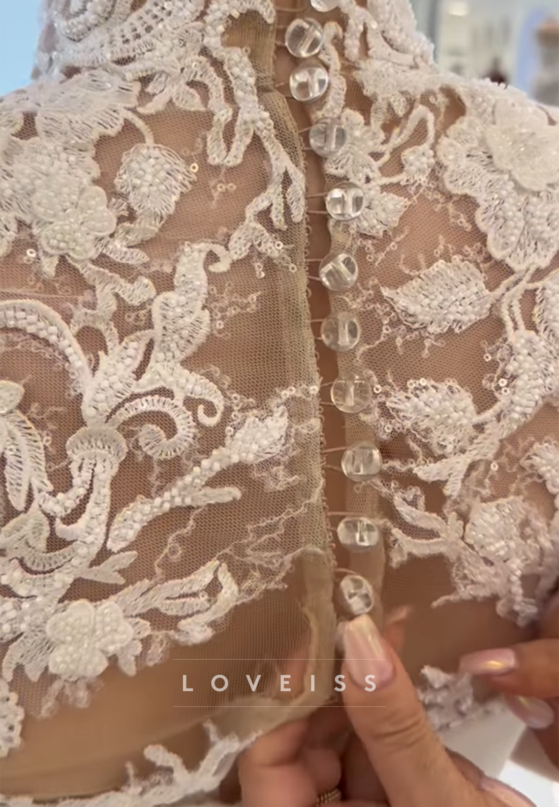 Command attention in this sophisticated mermaid wedding dress featuring a dignified high neckline and elegant long sleeves. The high neck provides polished coverage while creating a striking frame for your face, while the long sleeves add refined formality and a contemporary edge. Intricate pleated appliqués cascade across the bodice and gown, creating dimensional texture and visual interest that demonstrates exceptional artisanal skill. The pleating technique adds movement and depth, catching light beautifully as you walk. The fitted mermaid silhouette accentuates your curves with precision before transitioning into a dramatic flared hem that creates an unforgettable entrance. This gown represents the pinnacle of modern bridal design, perfect for the bride who appreciates architectural detail and wants a dress that feels both timeless and distinctly contemporary. An ideal choice for those seeking maximum elegance with a gown that balances coverage, embellishment, and dramatic silhouette in perfect harmony.